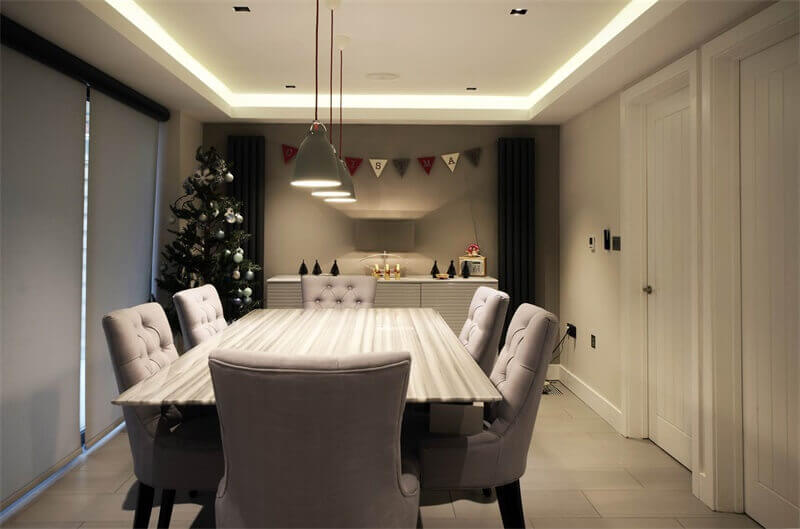 The bedroom is a space for people to relax, recuperate, and rest. The light should not be too bright. Install the light strip in the gap between the head of the bed. The Lumiman light strip voice control enables you to control the light via voice and an app. The brightness is dimmable, and color can be set. You can create your favorite scene at your fingertips.